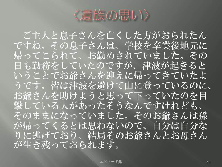 Edit Item 保健師による東日本大震災復興支援プロジェクト エピソード集|<遺族の思い 2-1>