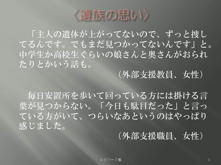 Edit Item 保健師による東日本大震災復興支援プロジェクト エピソード集|<遺族の思い 5>