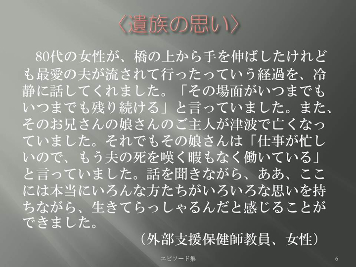 Edit Item 保健師による東日本大震災復興支援プロジェクト エピソード集|<遺族の思い 6>