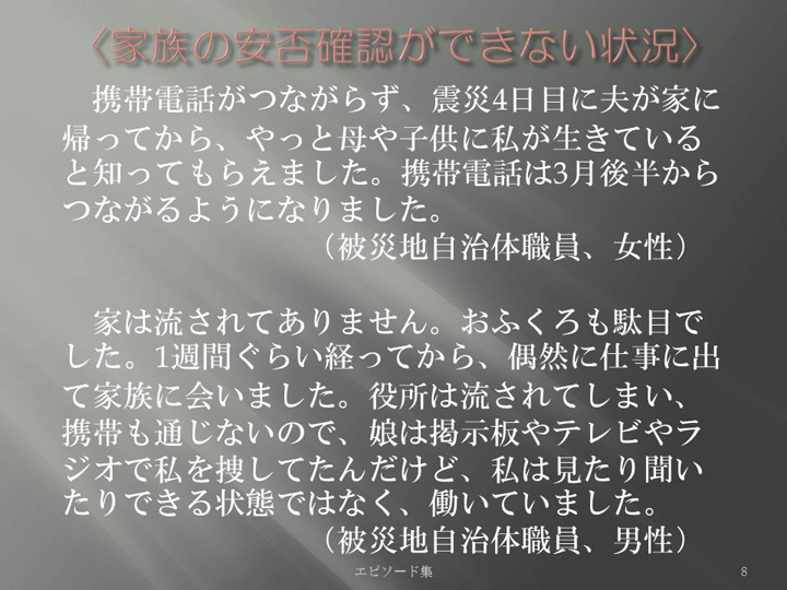 Edit Item 保健師による東日本大震災復興支援プロジェクト エピソード集|<家族の安否確認が出来ない状況 8>