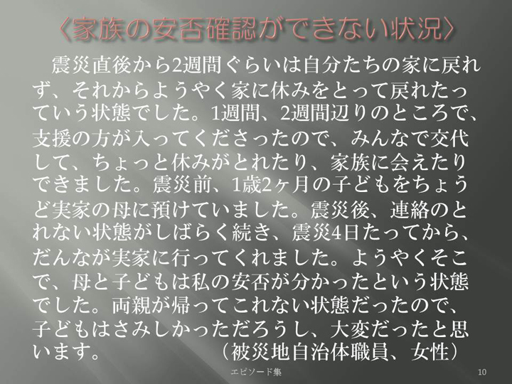 Edit Item 保健師による東日本大震災復興支援プロジェクト エピソード集|<家族の安否確認が出来ない状況 10>