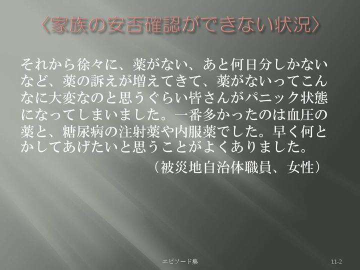 Edit Item 保健師による東日本大震災復興支援プロジェクト エピソード集|<家族の安否確認が出来ない状況 11-2>