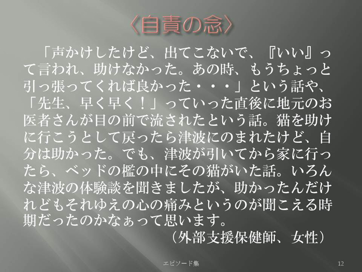 Edit Item 保健師による東日本大震災復興支援プロジェクト エピソード集|<自責の念 12>