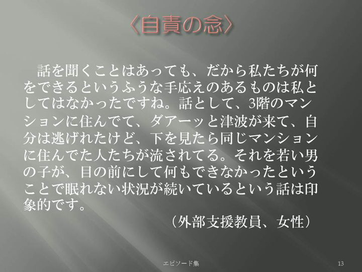 Edit Item 保健師による東日本大震災復興支援プロジェクト エピソード集|<自責の念 13>