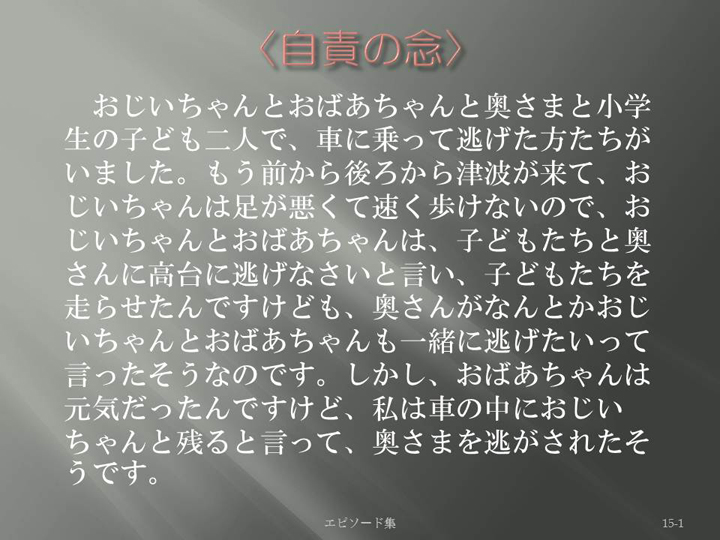 Edit Item 保健師による東日本大震災復興支援プロジェクト エピソード集|<自責の念 15-1>