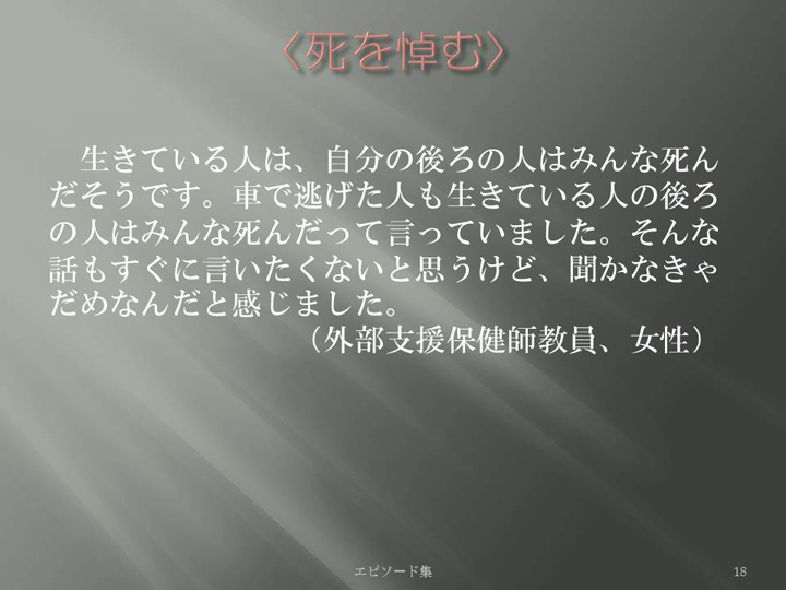 Edit Item 保健師による東日本大震災復興支援プロジェクト エピソード集|<死を悼む 18>