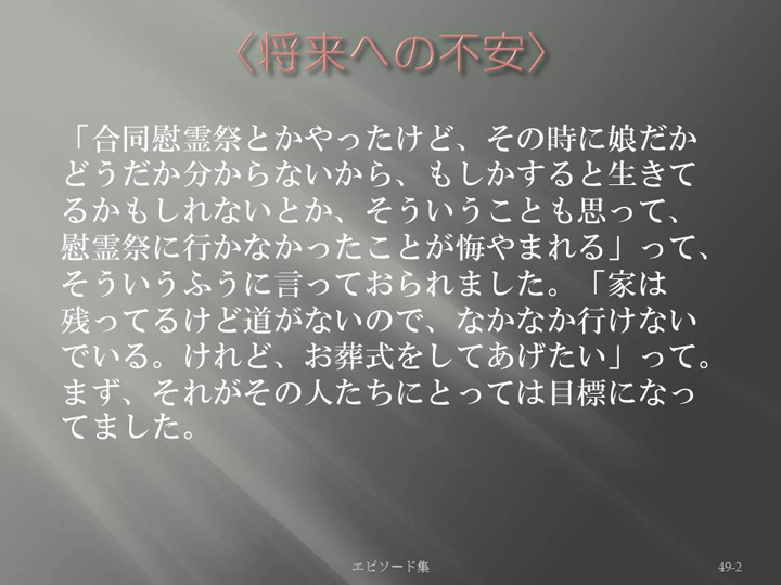 Edit Item 保健師による東日本大震災復興支援プロジェクト エピソード集|<将来への不安 49-2>