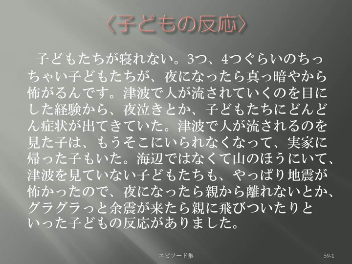 Edit Item 保健師による東日本大震災復興支援プロジェクト エピソード集|<子どもの反応 59-1>