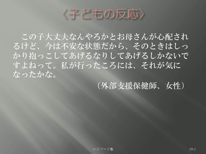 Edit Item 保健師による東日本大震災復興支援プロジェクト エピソード集|<子どもの反応 59-2>