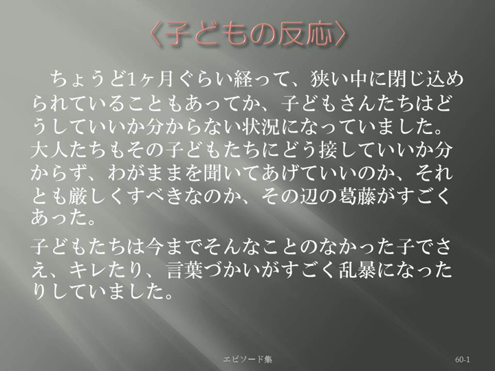 Edit Item 保健師による東日本大震災復興支援プロジェクト エピソード集|<子どもの反応 60-1>
