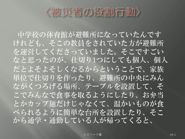 Edit Item 保健師による東日本大震災復興支援プロジェクト エピソード集|<回復力を感じたエピソード 69-1>