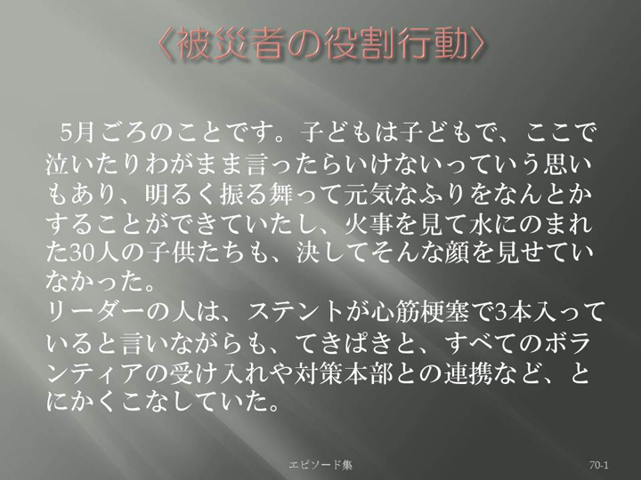Edit Item 保健師による東日本大震災復興支援プロジェクト エピソード集|<被災者の役割行動 70-1>