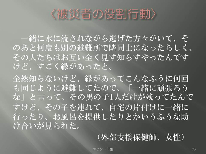 Edit Item 保健師による東日本大震災復興支援プロジェクト エピソード集|<被災者の役割行動 73>