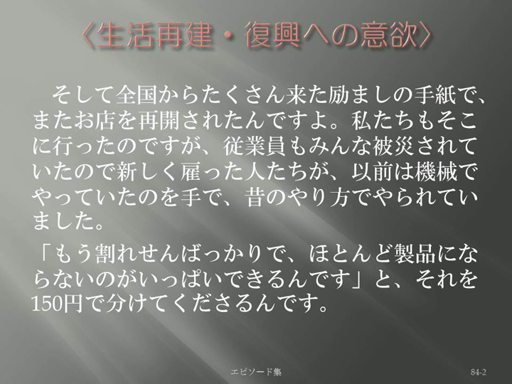 Edit Item 保健師による東日本大震災復興支援プロジェクト エピソード集|<生活再建・復興への意欲 84-2>