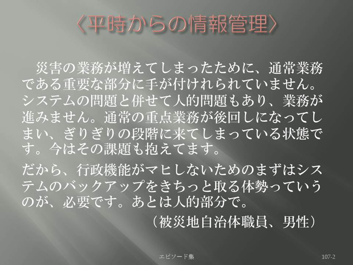 Edit Item 保健師による東日本大震災復興支援プロジェクト エピソード集|<平時からの情報管理 107-2>