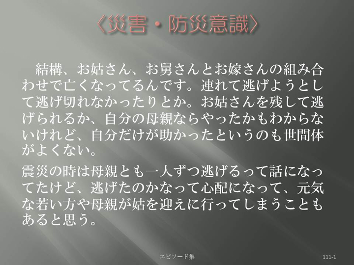 Edit Item 保健師による東日本大震災復興支援プロジェクト エピソード集|<災害・防災意識 111-1>