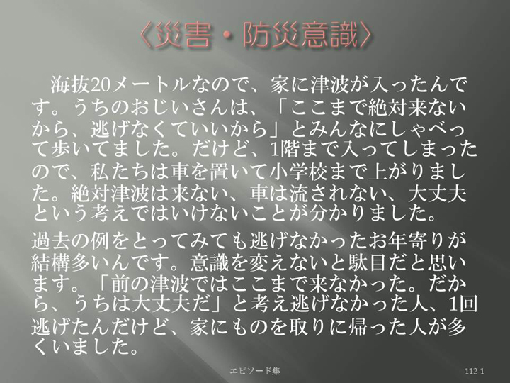 Edit Item 保健師による東日本大震災復興支援プロジェクト エピソード集|<災害・防災意識 112-1>