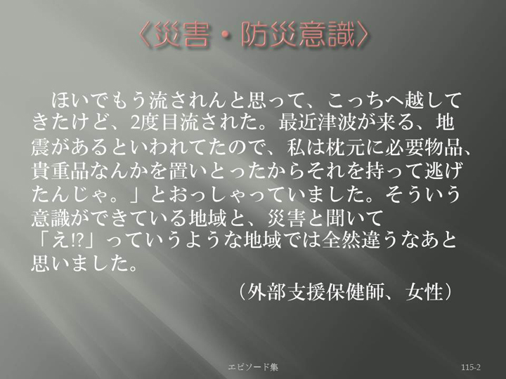 Edit Item 保健師による東日本大震災復興支援プロジェクト エピソード集|<災害・防災意識 115-2>