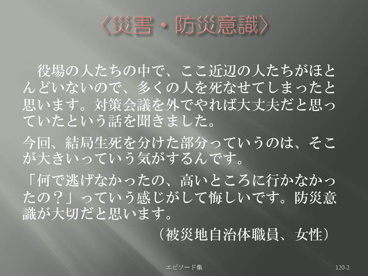Edit Item 保健師による東日本大震災復興支援プロジェクト エピソード集|<災害・防災意識 120-2>