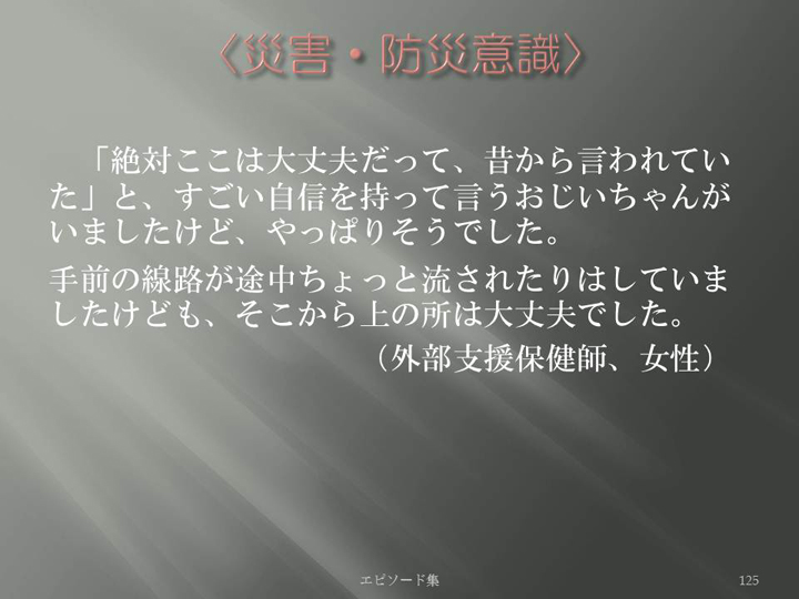 Edit Item 保健師による東日本大震災復興支援プロジェクト エピソード集|<災害・防災意識 125>