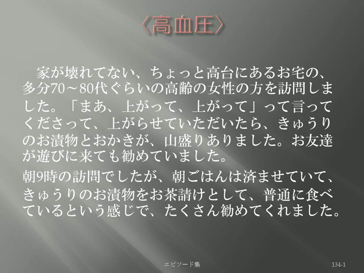 Edit Item 保健師による東日本大震災復興支援プロジェクト エピソード集|<高血圧 134-1>