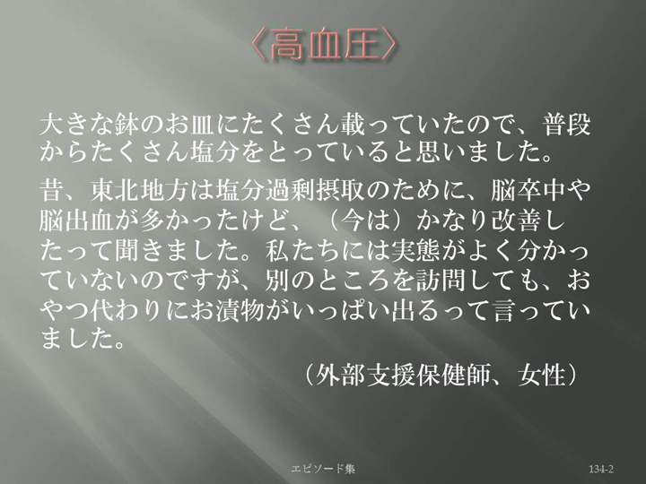Edit Item 保健師による東日本大震災復興支援プロジェクト エピソード集|<高血圧 134-2>