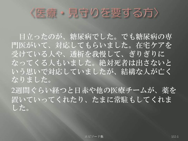 Edit Item 保健師による東日本大震災復興支援プロジェクト エピソード集|<医療・見守りを要する方 152-1>