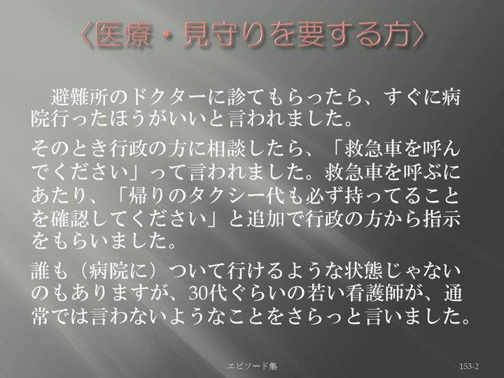 Edit Item 保健師による東日本大震災復興支援プロジェクト エピソード集|<医療・見守りを要する方 153-2>