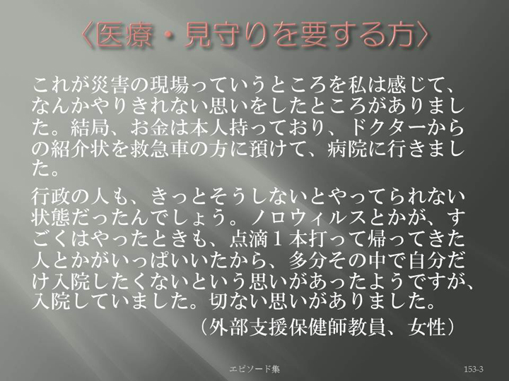 Edit Item 保健師による東日本大震災復興支援プロジェクト エピソード集|<医療・見守りを要する方 153-3>