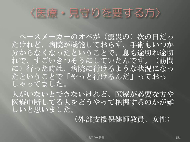 Edit Item 保健師による東日本大震災復興支援プロジェクト エピソード集|<医療・見守りを要する方 154>