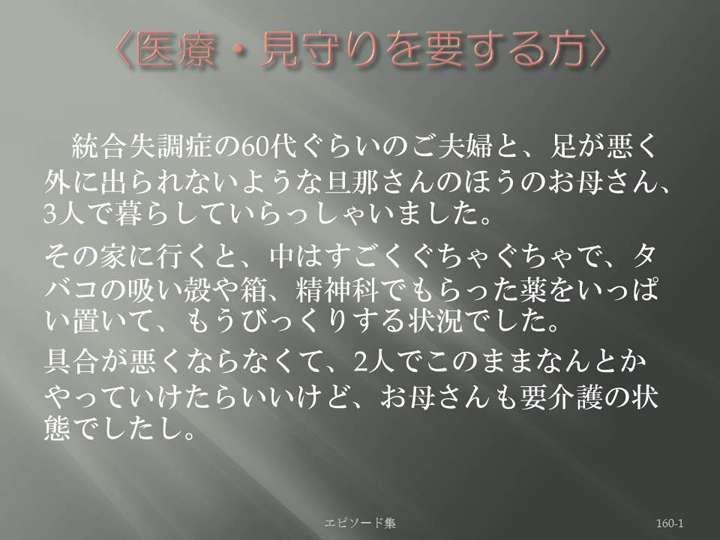 Edit Item 保健師による東日本大震災復興支援プロジェクト エピソード集|<医療・見守りを要する方 160-1>