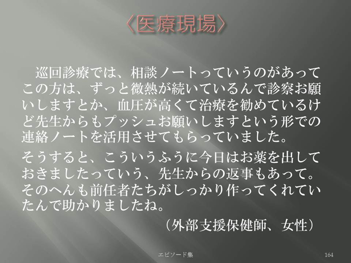 Edit Item 保健師による東日本大震災復興支援プロジェクト エピソード集|<医療現場 164>