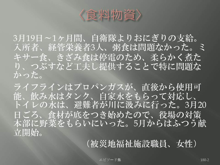 Edit Item 保健師による東日本大震災復興支援プロジェクト エピソード集|<食料物資 180-2>