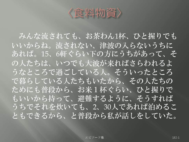Edit Item 保健師による東日本大震災復興支援プロジェクト エピソード集|<食料物資 182-1>