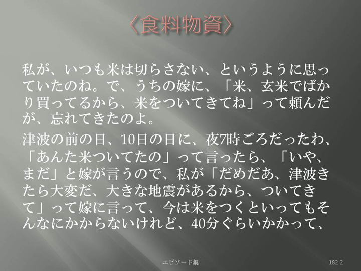 Edit Item 保健師による東日本大震災復興支援プロジェクト エピソード集|<食料物資 182-2>