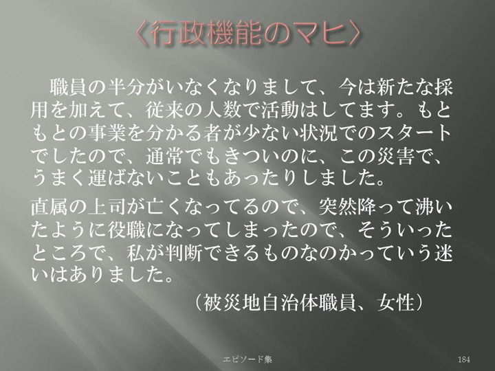 Edit Item 保健師による東日本大震災復興支援プロジェクト エピソード集|<行政機能のマヒ 184>