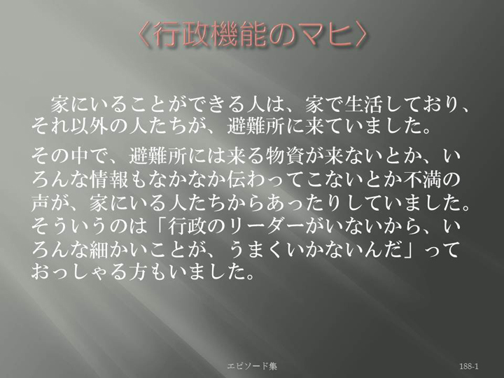 Edit Item 保健師による東日本大震災復興支援プロジェクト エピソード集|<行政機能のマヒ 188-1>