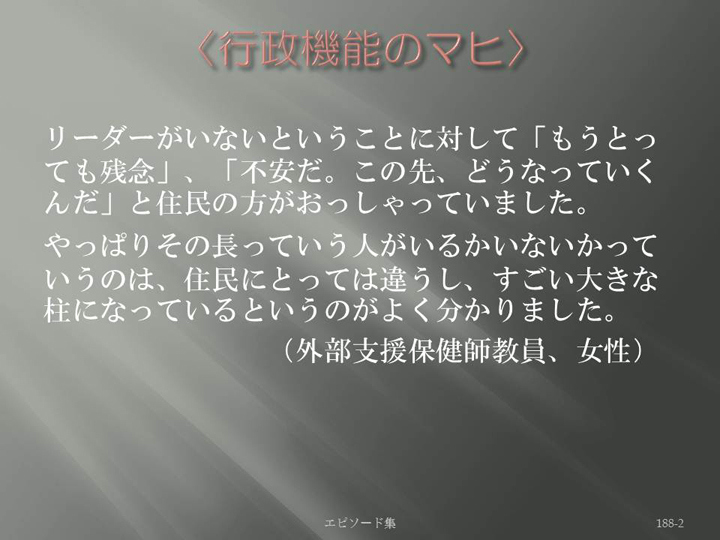 Edit Item 保健師による東日本大震災復興支援プロジェクト エピソード集|<行政機能のマヒ 188-2>