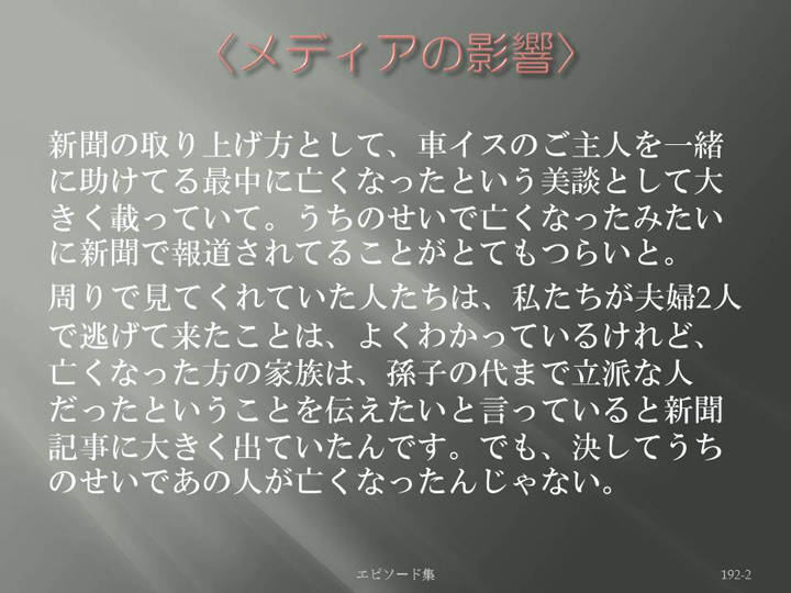Edit Item 保健師による東日本大震災復興支援プロジェクト エピソード集|<メディアの影響 192-2>