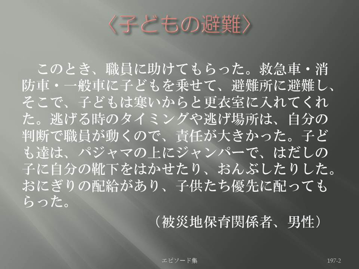 Edit Item 保健師による東日本大震災復興支援プロジェクト エピソード集|<子どもの避難 197-2>