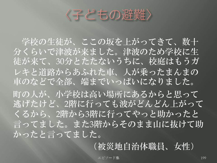 Edit Item 保健師による東日本大震災復興支援プロジェクト エピソード集|<子どもの避難 199>