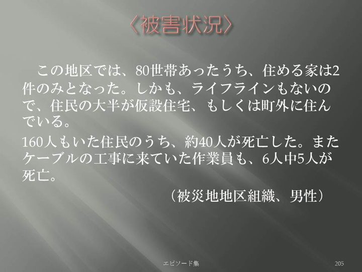 Edit Item 保健師による東日本大震災復興支援プロジェクト エピソード集|<被害状況 205>